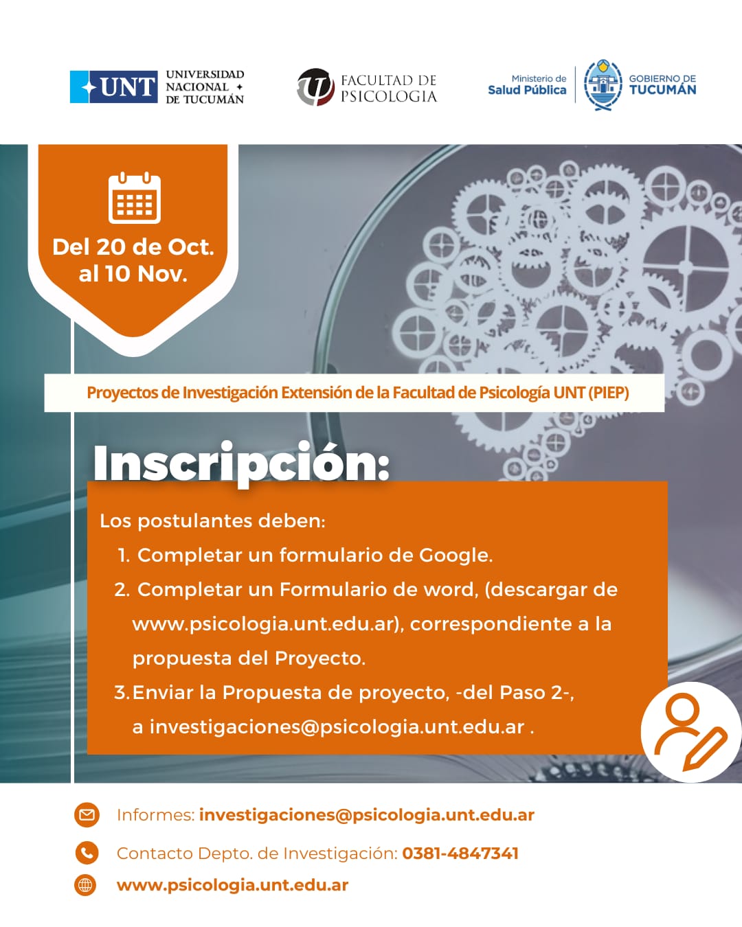 Las propuestas deberán presentarse completando el formulario de Google y enviarse a investigaciones@psicologia.unt.edu.ar