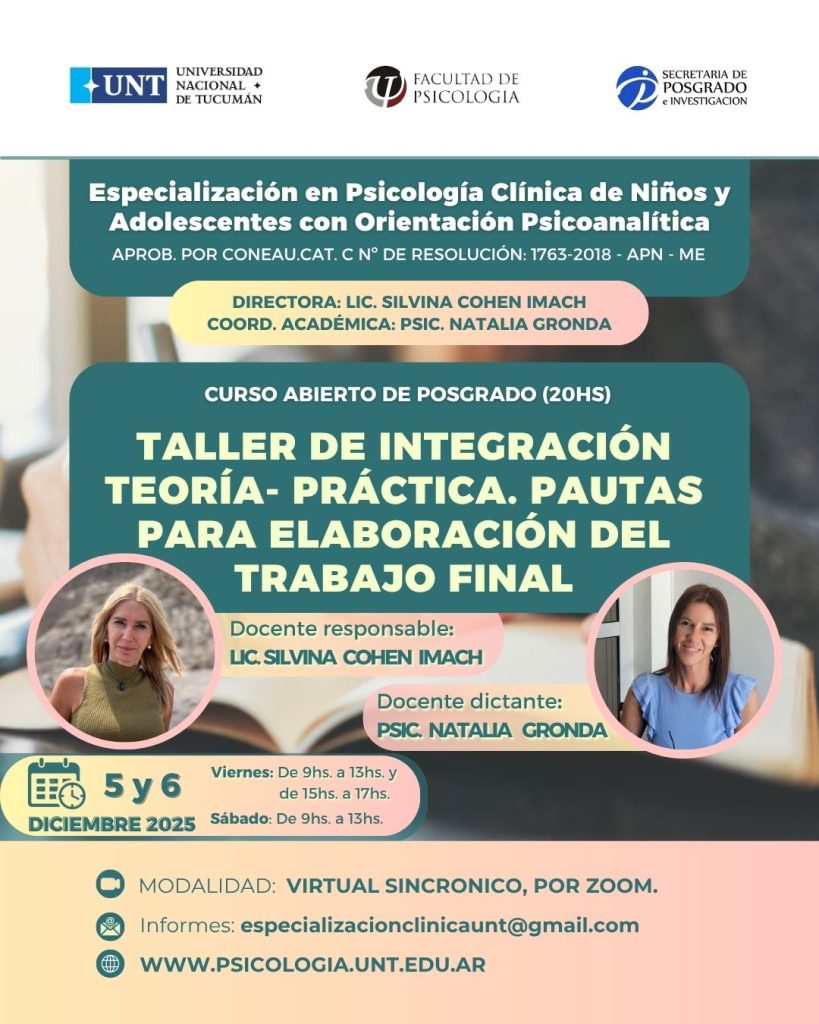 La Especialización en Clínica de Niños y Adolescentes con Orientación Psicoanalítica invita a profesionales, estudiantes avanzados y público interesado a participar del curso abierto correspondiente al mes de diciembre.